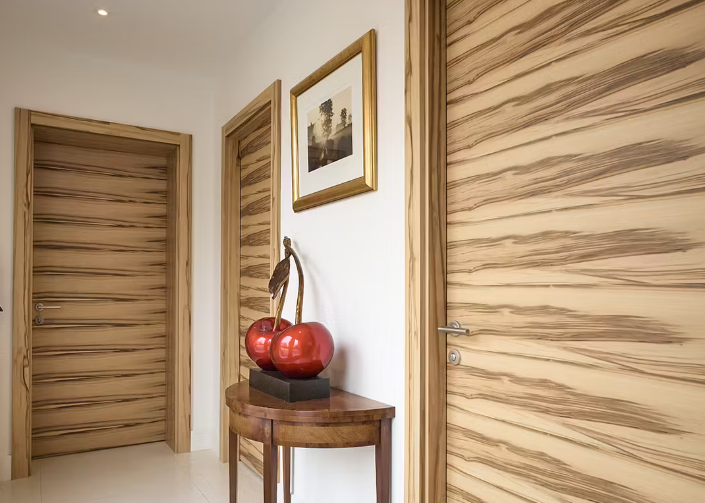 Díszített panelek, faragások és elegáns kilincsek jellemzik, amelyek részletgazdagságával hozzájárulnak a hagyományos enteriőrök meleg, otthonos hangulatához.